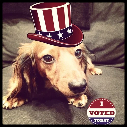 Only thing missing from my voting experience? A “I voted” sticker! Apparently they didn’t give them out at most poll locations in NYC. Bummer right? So, instead I took to Photoshop and dressed our office dog, Teddy, up for the occasion.