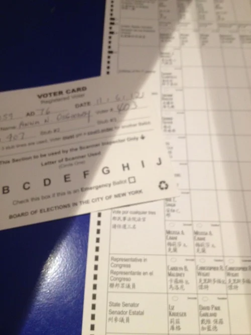 This year is my first year voting at the polls! I was able to vote in the 2008 election, but did so via absentee ballot since I was in Oregon for college. Now that I live in New York, I had to re-register to vote. I’m kind of a gypsy in sense of IDs because I have an Oregon Driver’s License, my car registered in Washington, and now I’m a registered voter in New York!