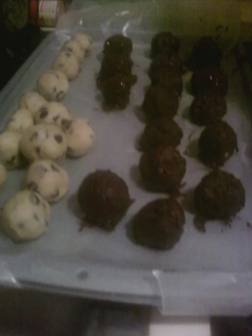 We decided to make two dessert recipes. One, pumpkin cookies with cream cheese frosting, and two, chocolate chip cookie dough truffles.