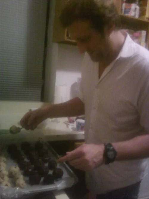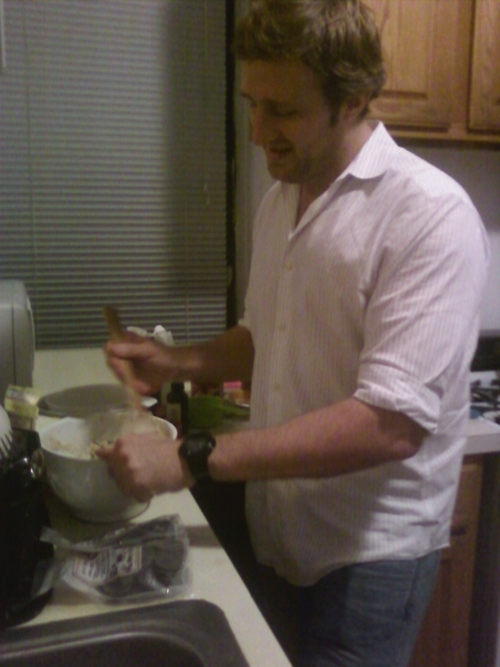 Of course I didn’t want to come empty handed so Chris and I headed to the kitchen. After our cake-pops incident over Easter I think Chris was a little apprehensive about heading back to the kitchen, but everything turned out well and there were no-lates of panicking over melted chocolate. Progress! I also made sure that Chris was not involved in any egg-cracking for the recipes, since the last time I let him crack an egg for cookies the cookies each had a special gift of egg-shell in them!